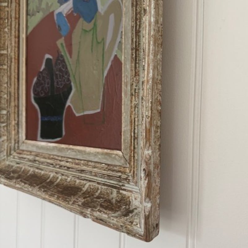 Acrylic, Charcoal and Chalk on panel in vintage French frame.
