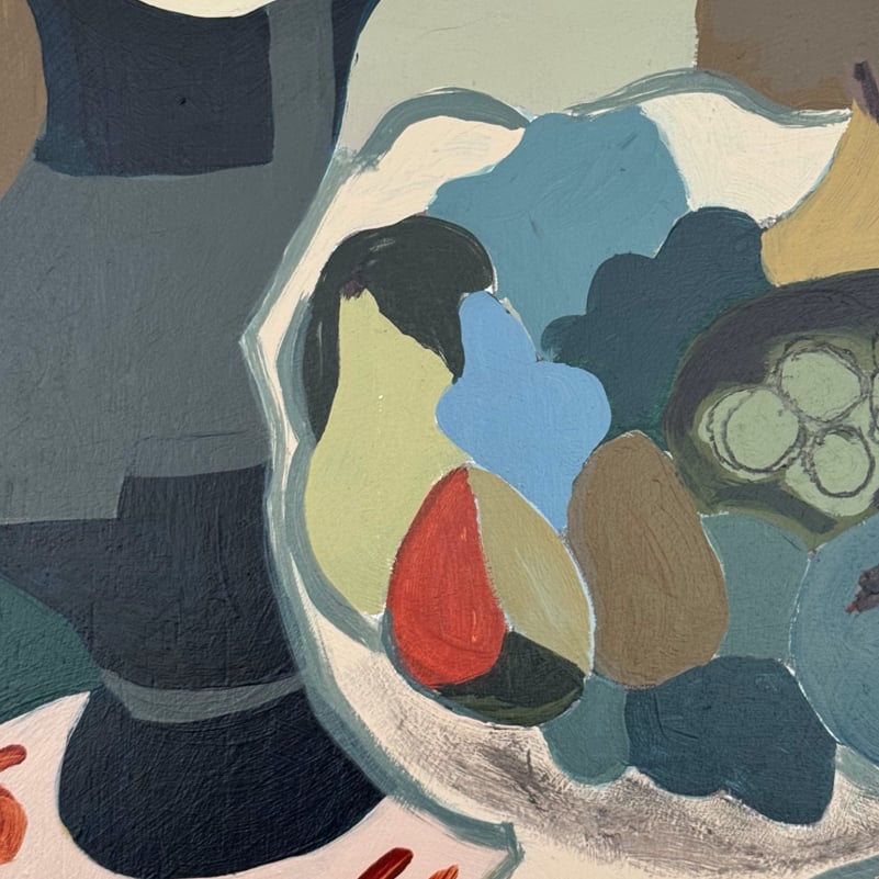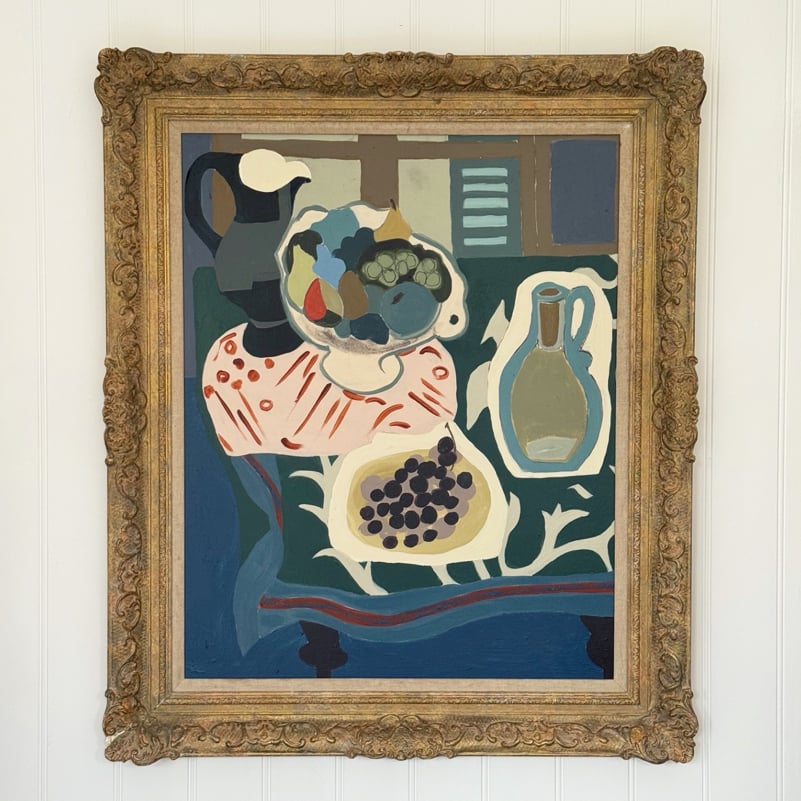 Acrylic, Charcoal and Chalk on panel in vintage French Montparnasse frame.